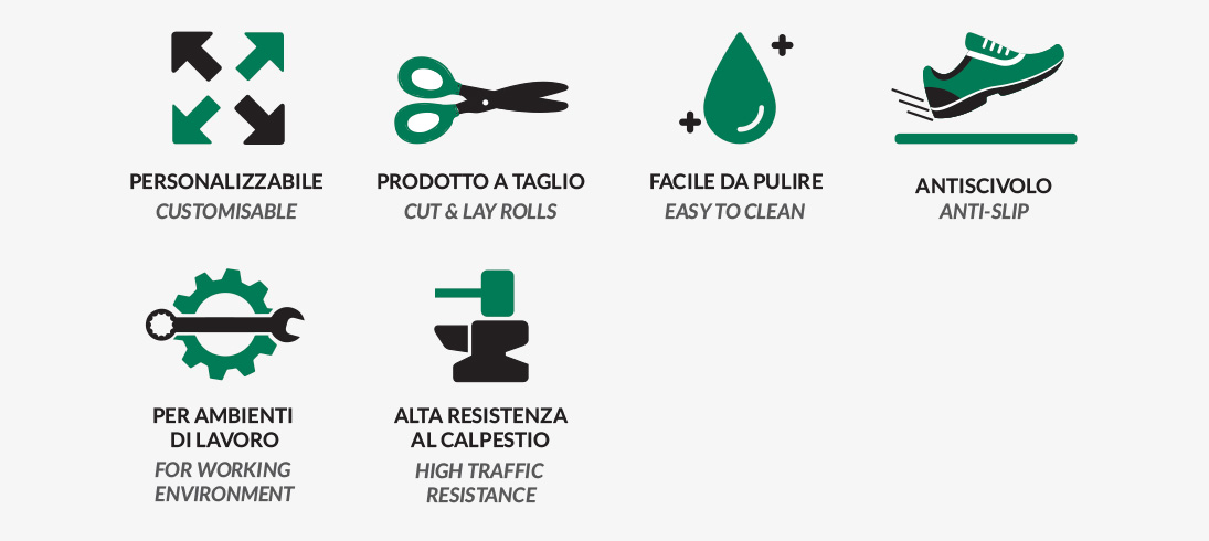 Perché è adatto a quest’uso? Perché il pvc non si deforma facilmente, garantisce lunga durata e costi contenuti: questo lo rende il materiale ideale per luoghi ad alto calpestio.