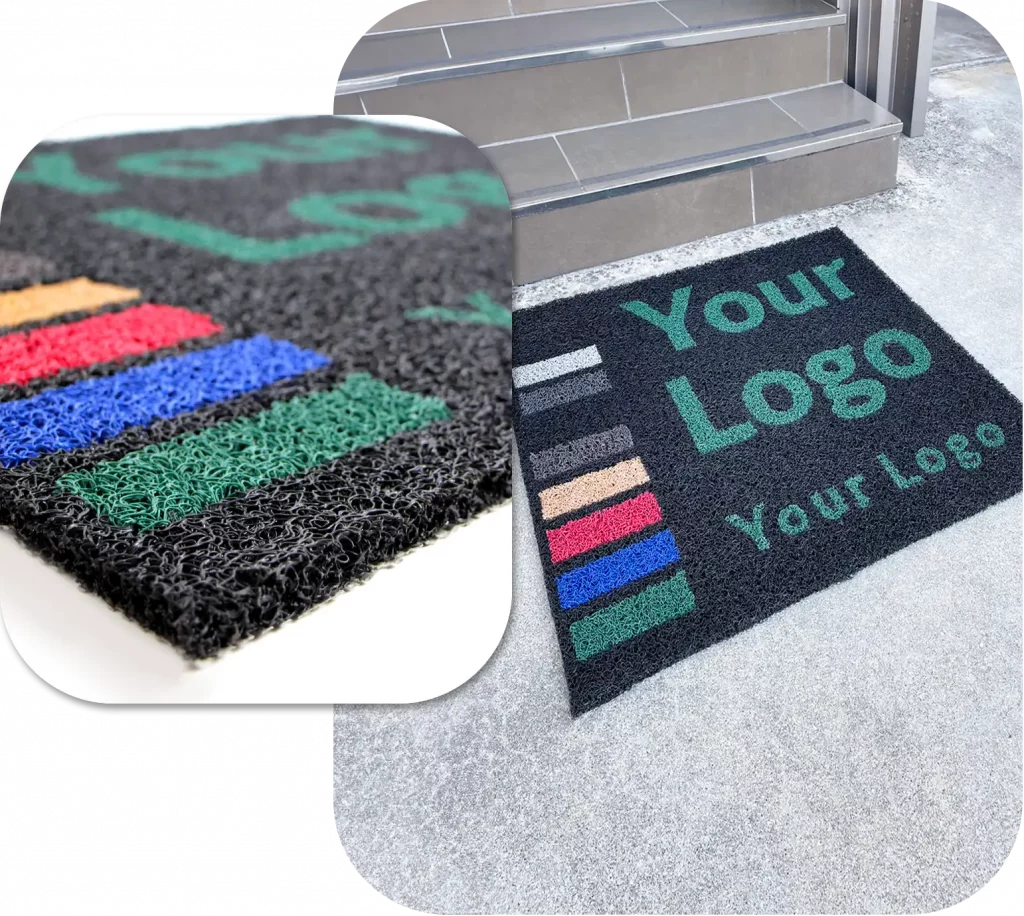 Equipped with vinyl backing, it is suitable for dry or wet professional settings with heavy traffic: laboratories, warehouses, greenhouses and stores. Twist, the customized curly pvc doormat, is easy to clean with a jet of water, resistant to trampling, and customizable in graphics and size.