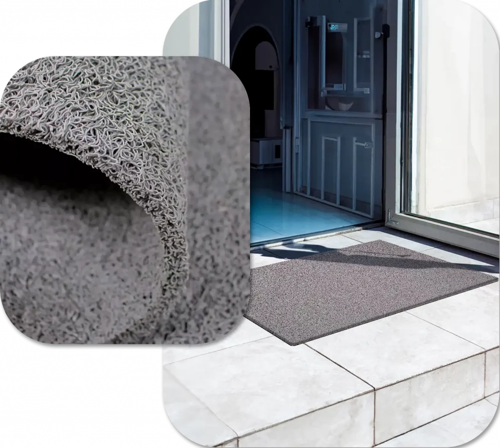 The vinyl backing makes it perfect for dry or wet environments with heavy traffic: laboratories, stores, warehouses and greenhouses. Easy to clean with a jet of water, it is a custom-made curly pvc doormat that can be customized in colors to suit every professional need.