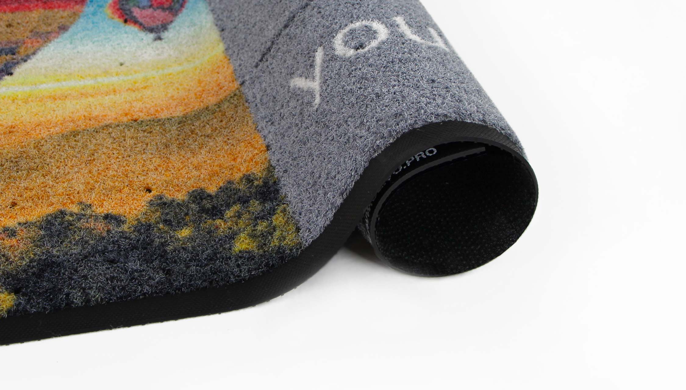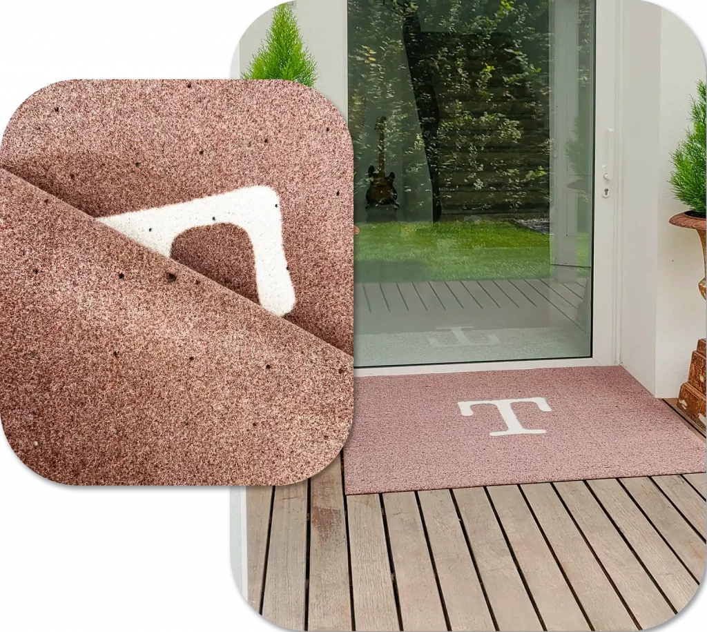 Si tratta di un tappeto personalizzato per esterno perfetto per rimanere all’aperto, garantisce aderenza, pulizia e un impatto estetico curato.