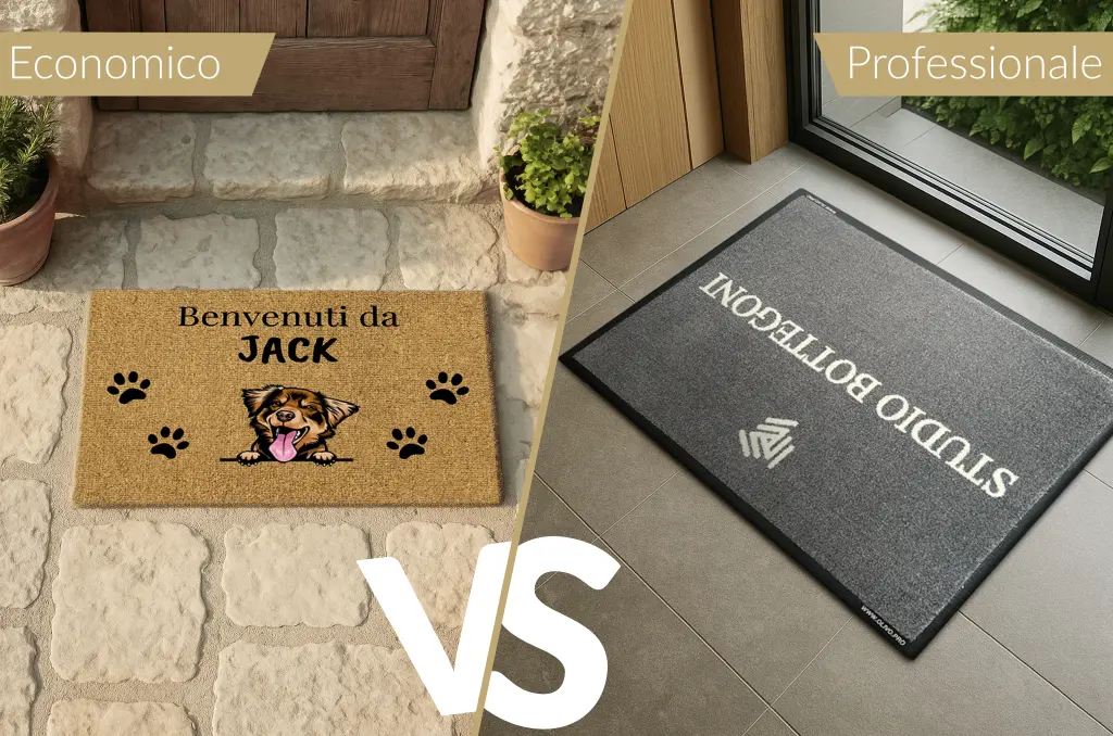 Calcolare il costo del proprio zerbino personalizzato online è semplice ma richiede la consapevolezza di ciò che si sta acquistando. Oltre alla superficie del tappeto vanno aggiunte eventuali opzioni come bordi rinforzati, stampe fotorealistiche, sagomature o finiture speciali che incrementano il prezzo. La nostra promessa però è unica: ogni euro investito è un centimetro di qualità in più guadagnato, perché si traduce in un plus di resistenza, estetica e professionalità che, sul lungo periodo, ripaga ampiamente.