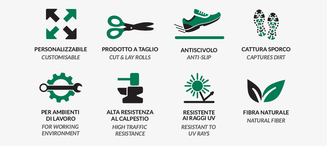 non si sposta dalla sua sede garantendo una tenuta, una sicurezza e un ordine impeccabili, a differenza di un normale zerbino seppur provvisto di un fondo antiscivolo;